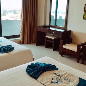 Bên cạnh trang thiết bị cao cấp, khách sạn cũng đặc biệt chú trọng đến cách phục vụ khách hàng theo tiêu chí “Thời gian bạn lưu trú ở đây là những thời gian thoải mái nhất” – Với phong cách phục vụ ân cần, niềm nở, chu đáo và chuyên nghiệp của đội ngũ nhân viên giàu kinh nghiệm BLUE WAVE chắc chắn sẽ làm hài lòng Quý khách khi có dịp nghỉ tại khách sạn