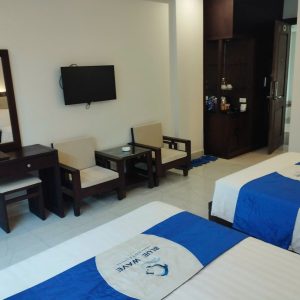- Tiện ích phòng đầy đủ: điều hoà máy lạnh, tivi màn hình phẳng 45″, máy sấy tóc, ấm đun siêu tốc
