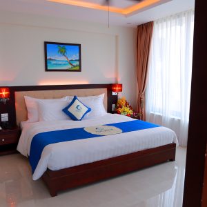 - Tiện ích phòng đầy đủ: điều hoà máy lạnh, tivi màn hình phẳng 45″, ban công bồn tắm view biển